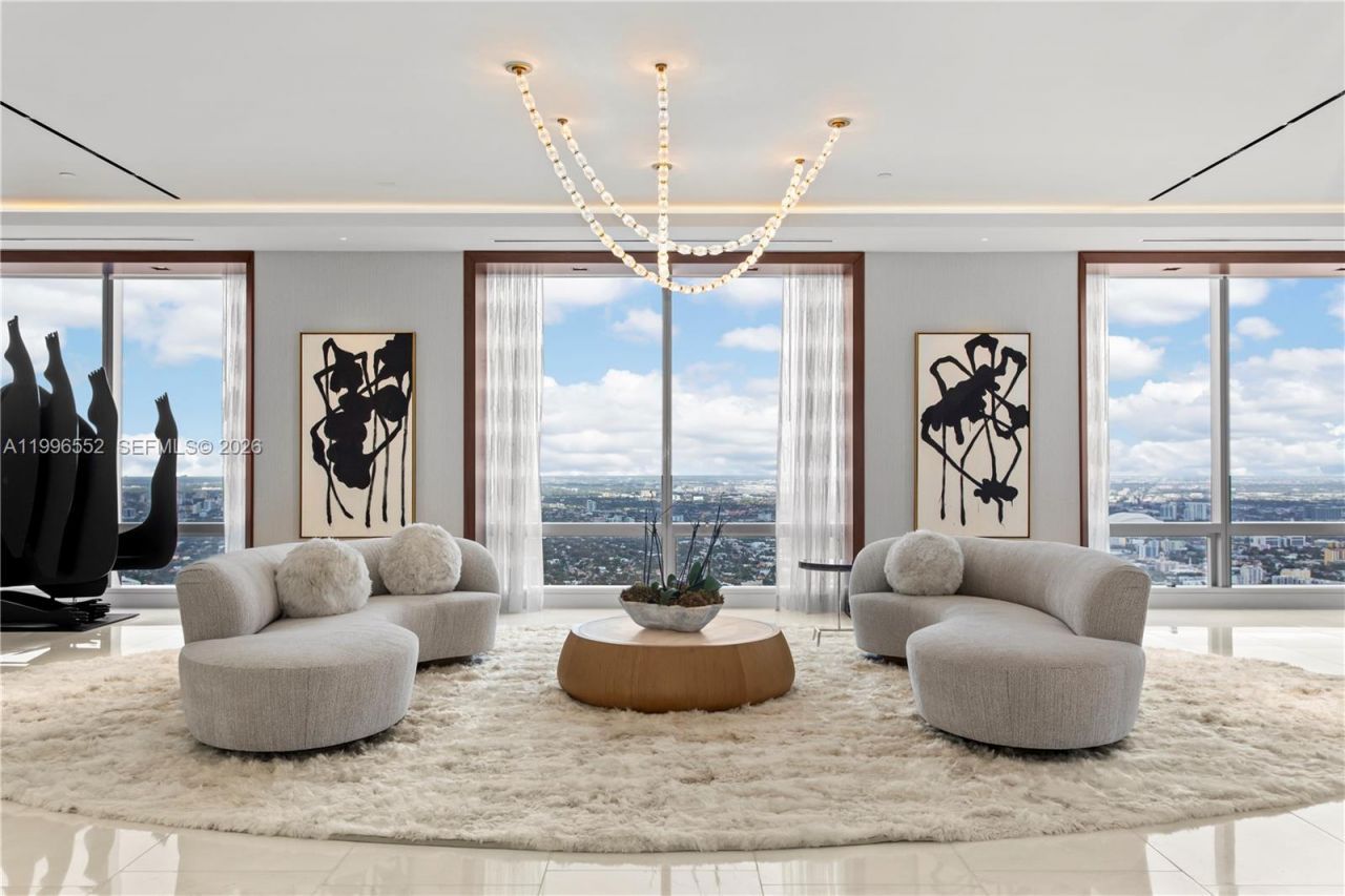 Welcome to the sky! On the 70th floor, this nearly 6,000 SF penthouse, designed by Jonathan A Ragusa, unites three units into an extraordinary residence. Breathtaking views of the ocean, skyline, and city set the stage for this impeccable home. Rich in detail, it boasts Cristallo stone, Italian Italcraft cabinetry, and a chefs kitchen with Wolf and Sub-Zero appliances. Handcrafted Venetian glass light fixtures, bespoke European furnishings, and curated art enhance the interiors timeless elegance...Welcome to the sky! On the 70th floor, this nearly 6,000 SF penthouse, designed by Jonathan A Ragusa, unites three units into an extraordinary residence. Breathtaking views of the ocean, skyline, and city set the stage for this impeccable home. Rich in detail, it boasts Cristallo stone, Italian Italcraft cabinetry, and a chefs kitchen with Wolf and Sub-Zero appliances. Handcrafted Venetian glass light fixtures, bespoke European furnishings, and curated art enhance the interiors timeless elegance. Smart home automation with Josh AI and Alisse switches seamlessly controls lighting, sound, and shades. Two expansive living areas, a spa-like primary suite, private entry, 4 parking spaces, and 6 Equinox memberships complete this rare and exceptional offering.
