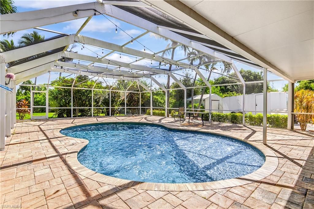 Welcome to this beautifully maintained 3-bedroom, 2-bathroom home in highly desirable South Fort Myers. Perfectly situated on an oversized lot, this property offers exceptional outdoor living with a saltwater pool, expansive patio, outdoor fire pit, and fully fenced backyard designed for privacy and entertaining. The outdoor space is completed with a built-in bar, storage shed, and lush, mature landscaping that creates a true Florida retreat.Inside, you'll find a light and open layout featuring ...Welcome to this beautifully maintained 3-bedroom, 2-bathroom home in highly desirable South Fort Myers. Perfectly situated on an oversized lot, this property offers exceptional outdoor living with a saltwater pool, expansive patio, outdoor fire pit, and fully fenced backyard designed for privacy and entertaining. The outdoor space is completed with a built-in bar, storage shed, and lush, mature landscaping that creates a true Florida retreat.Inside, you'll find a light and open layout featuring a gourmet kitchen with stainless steel appliances, granite countertops, custom cherrywood cabinetry, and a breakfast bar. Tile and wood flooring run throughout, complemented by plantation shutters and thoughtful upgrades including a partially remodeled interior and freshly painted garage. The new roof adds peace of mind for years to come.Ideally located close to beaches, dining, shopping, medical facilities, and top schools, this home offers both convenience and lifestyle. Whether used as a primary residence, seasonal getaway, or income-producing rental, it's a versatile opportunity in a prime location.